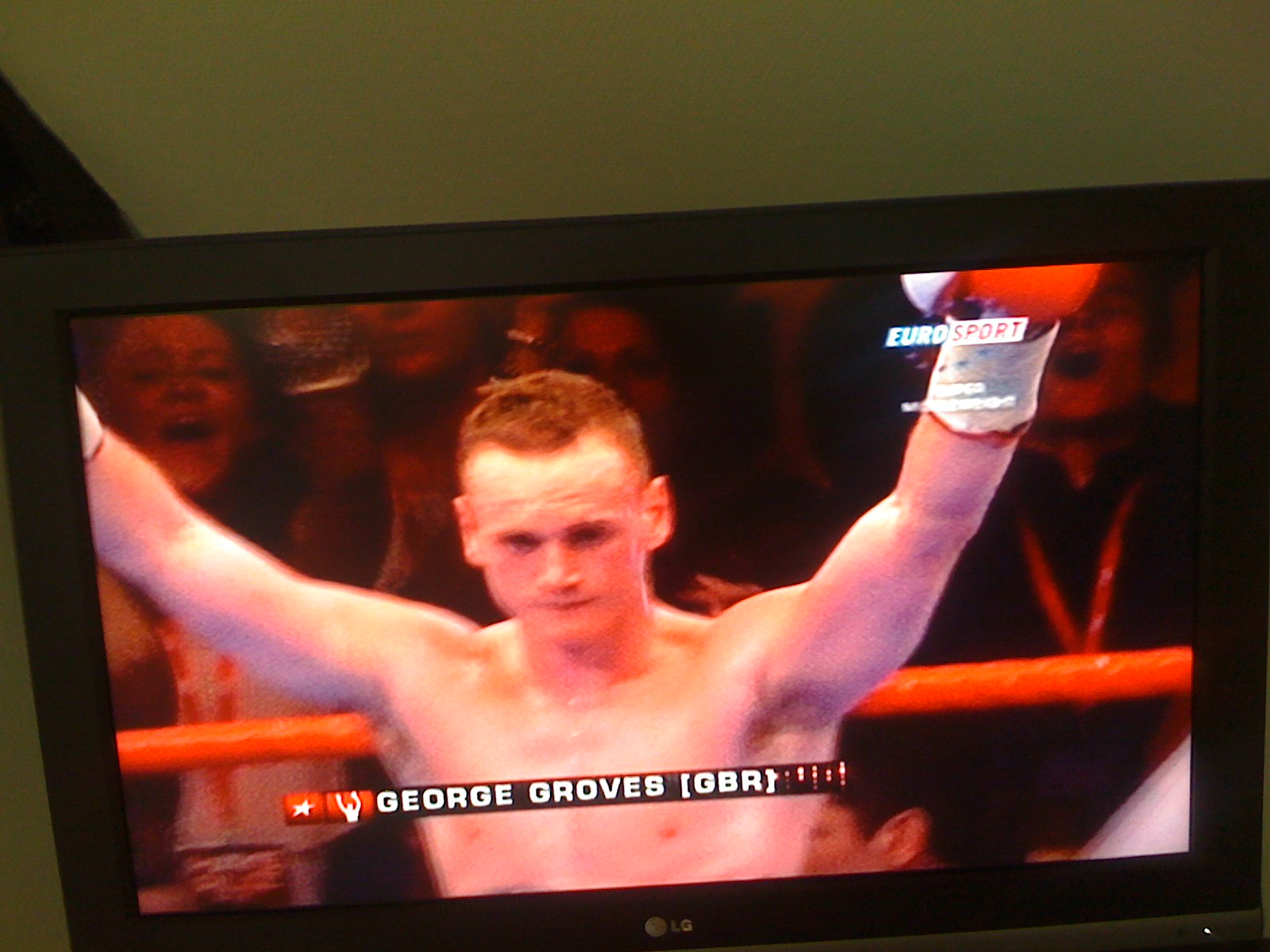 So here I was at home chilling out and relaxing my brain after doing a heap load of Danish homework when I happen to flick onto Eurosport....and who should I see? None other than the Commonwealth Super Middle weight boxing champion George Groves. That's my cousin if you didn't know!